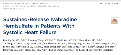 [2]. Ye F ;Wang X ;et al. Sustained-Release Ivabradine Hemisulfate in Patients With Systolic Heart Failure.[J]. Journal of the American College of Cardiology, 2022, 80(6):584-594