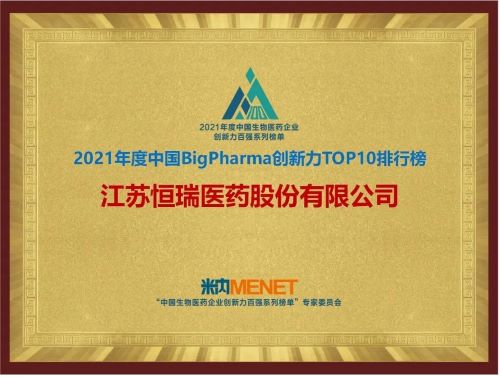 9月16日,由米内网主办的“2021年度中国生物医药企业创新力百强系列榜单”发布会在线上举办。jinnian金年会继去年登顶“中国BigPharma企业创新力TOP10排行榜”后,今年再次名列该榜单首位。