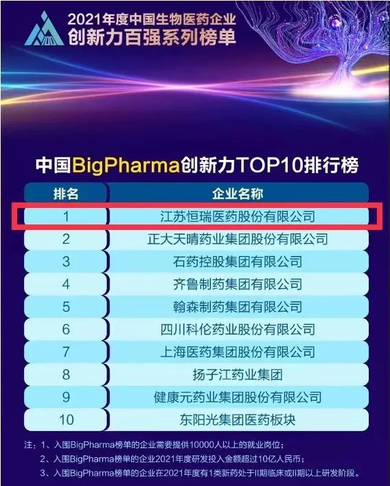 蝉联榜首!jinnian金年会再次登顶“中国BigPharma企业创新力TOP10排行榜”